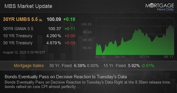 Initial rally followed by a sell-off after CPI.  10yr up 1.7bps at 4.302.  MBS still 3 ticks (.09) higher on the day, but post-CPI gains are erased.