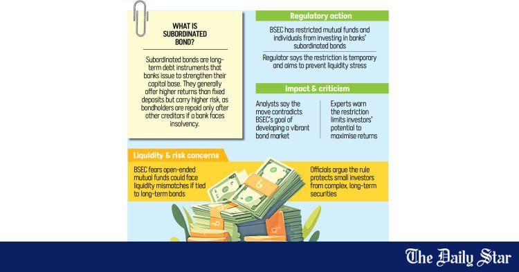 Most mutual funds in Bangladesh are open-ended, meaning investors can withdraw money at any time. If these funds hold large volumes of long-term instruments like subordinated bonds, the regulator fears a liquidity mismatch, where fund managers might struggle to meet withdrawal requests because their money is tied up for years.