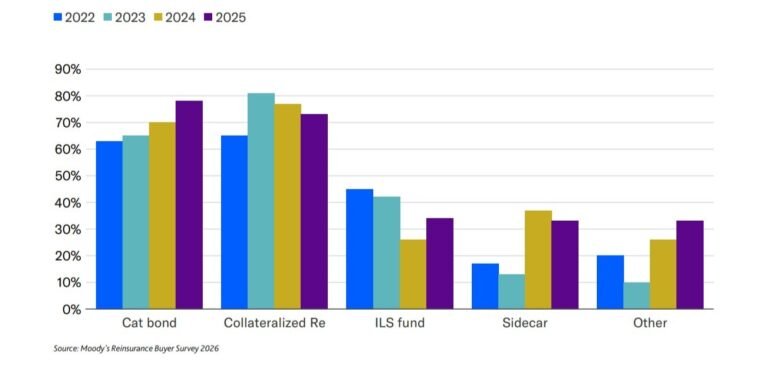 As per a survey by Moody’s Ratings, over the next year, reinsurance buyers have indicated a strong preference for catastrophe bonds when it comes to utilising alternative capital, while insurance-linked securities (ILS) funds are expected to see increased demand too.