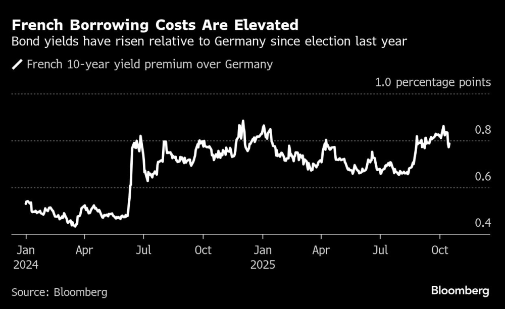 The securities jumped after Prime Minister Sebastien Lecornu appear to stave off the risk of new elections, partly by suspending a pension law that raises the retirement age. That move was crucial to securing the promise of Socialist Party backing in no-confidence votes that he otherwise risked losing.