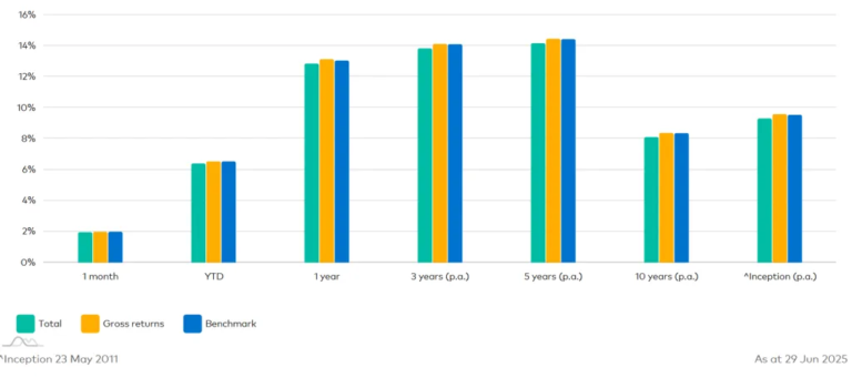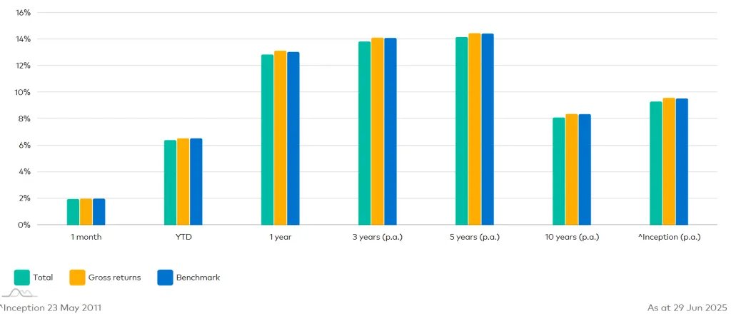 SYI’s total returns trail its benchmark index by small margins. The ASX website lists the fund’s Annual Yield at 12.74%.