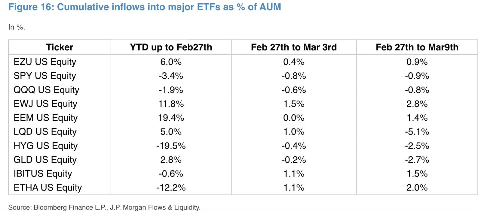 • Gold ETF withdrawals reached 2.7% of total assets since the Iran conflict started, while Bitcoin ETF deposits climbed 1.5%