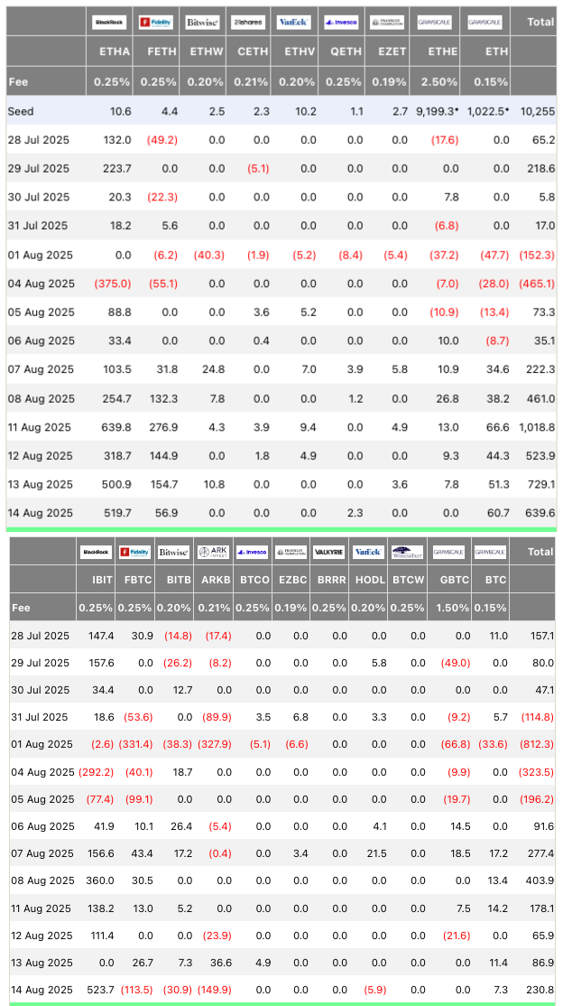 BlackRock’s iShares Bitcoin Trust (IBIT), the largest of the US spot Bitcoin exchange-traded funds (ETFs), added over $500 million in BTC on Thursday. Its Ether (ETH) equivalent added a similar amount, bucking the short-term price rout.