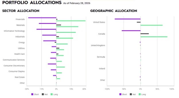 The fund provides transparency around its long and short exposures, including sector and geographic differences between the two sides of the portfolio.