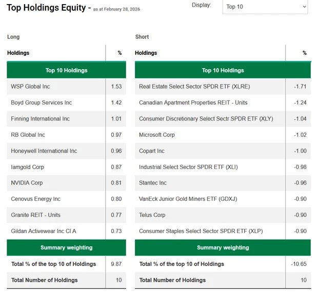A similar strategy can be seen in the Desjardins Alt Long/Short Equity Market Neutral (DANC), which also uses a long/short equity approach designed to neutralize market exposure.
