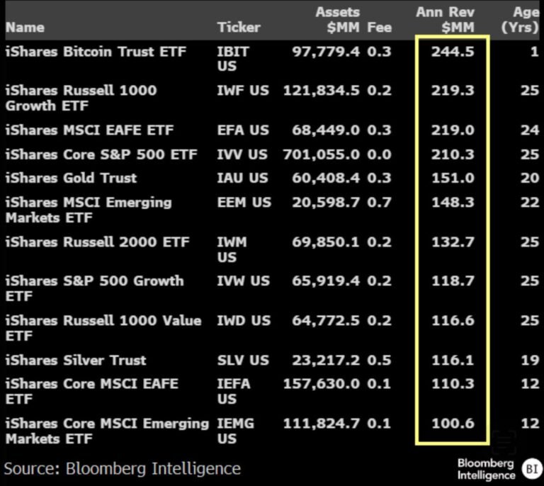 Meanwhile, Senior Bloomberg ETF Analyst Eric Balchunas noted that IBIT is now BlackRock’s most profitable ETF, with assets under management just shy of $100 billion, generating an estimated $244.5 million in annual revenue. The next closest fund by revenue is the iShares Russell 1000 Growth ETF. Balchunas also highlighted that IBIT is approaching $100 billion in AUM in just 435 days, whereas the next-fastest ETF to reach that milestone, the Vanguard S&P 500 ETF (VOO), took 2,011 days.