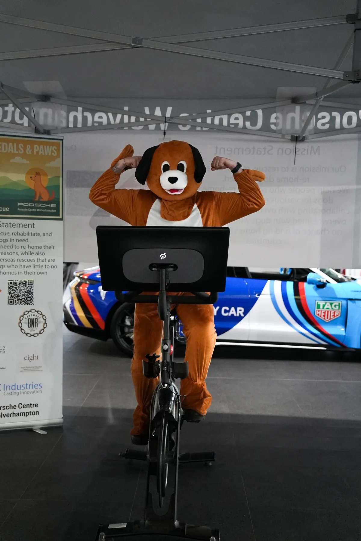 Over 40 volunteers including Porsche Centre staff customers, friends and family cycled day and night in the dealership last month as part of the “Porsche, Pedals & Paws” charity challenge.