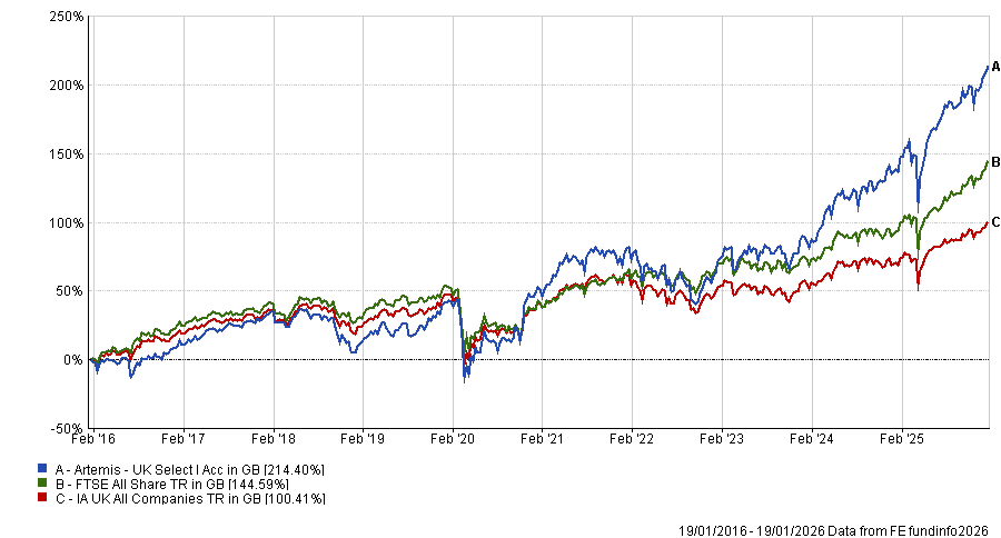 Artemis UK Select was the only active IA UK All Companies fund to take in more than £500m in new money from investors last year, data from FE Analytics shows.