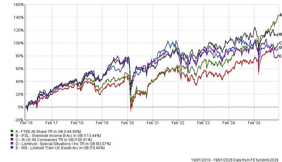 The fund, which was once home to more than five times its current £1bn in assets under management, has had a rotten few years, sitting in the bottom quartile of the peer group in both 2025 and 2024. As such, it is below the average peer over one, three, five and 10 years, the latter of which is the only time period that it escapes the bottom 25% of the sector.