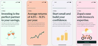 A series of images showing the onboarding of Zopa Investments (PRNewsfoto/Zopa Bank)