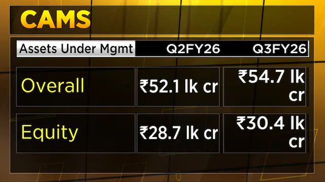 CAMS reported a steady quarter-on-quarter performance in the October-December quarter of 2025 (Q3FY26), with revenue rising 3.6% to ₹390.14 crore from ₹376.70 crore in the previous quarter. earnings before interest, taxes, depreciation and amortisation (EBITDA) grew 6.7% to ₹178.86 crore from ₹167.60 crore, reflecting improved operating efficiency. EBITDA margin expanded by 135 basis points to 45.85% from 44.49%, while net profit rose 9.9% to ₹125.50 crore compared with ₹114.20 crore in the preceding quarter.