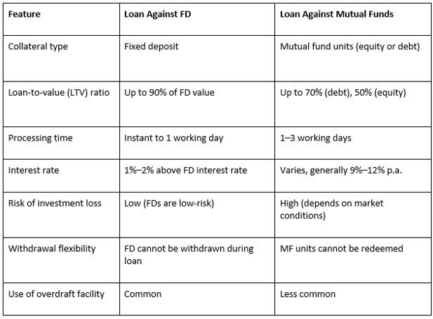 If you need a short-term loan for personal needs, a loan against fixed deposit may be quicker and easier. However, if your funds are invested in mutual funds and you want to retain exposure to markets, a loan against mutual funds can be considered.
