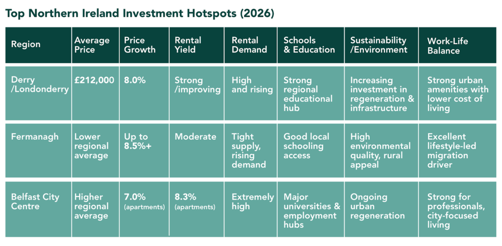 While Belfast remains the region’s core rental engine, these regional markets are increasingly attracting attention for their balance of capital growth potential, lower entry points and evolving economic profiles.