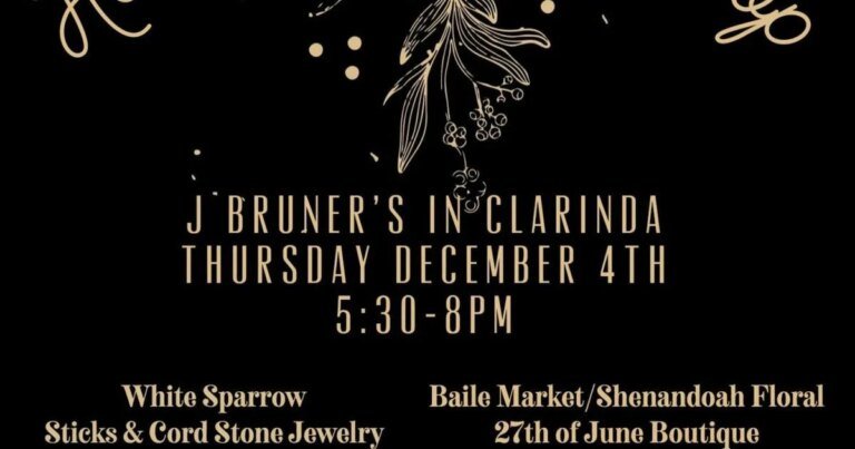 J. Bruner’s in Clarinda will host its fifth annual Holiday Sip and Shop on Thursday, Dec. 4, from 5:30 to 8 p.m., featuring 16 vendors, live music and specialty drinks.